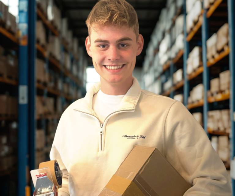 „Ich packe gern an: Faltschachteln aufrichten, befüllen, etikettieren – Konfektionierung in kleinen Losgrößen macht mir Spaß, weil jeder Handgriff zählt. Und wenn’s was Schweres zu tragen gibt, schleppe ich auch das, was Eddy nicht will – einer muss ja die Gains holen. 😄 Wenn am Ende alles glatt durchläuft und die Palette sauber rausgeht, bin ich zufrieden. Am liebsten klebe ich die Umkartons zu und verlade die Ware! 💪“