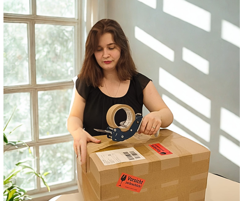 „Neben dem Studium mag ich klare Abläufe und saubere Ergebnisse: Faltschachteln aufrichten, befüllen, etikettieren – Konfektionierung genau und korrekt. Und wenn’s mal größere Mengen sind, ist das perfekt zum Abschalten: Kopfhörer auf, Fokus an, Palette für Palette fertig. Am meisten feier’ ich die kumpelhafte Art unserer Chefs – Hendrik & Eduard packen mit an und halten uns den Rücken frei. 🎧“